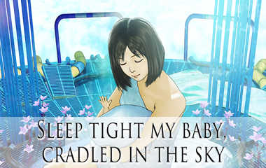 'Sleep tight my baby, cradled in the sky' is sci-fi story of Japanese style 3DCG Animation. Newborn Orine is orphaned in a tragic accident driving home from hospital. Nineteen years later Orine is on the run from the police when government agent Yuri offers an escape: a secretive mission to an experimental space-station orbiting earth. Orine enters the space-station, and find her mother, Satomi, almost unchanged since her death almost 20 years ago...