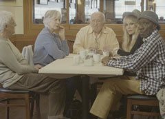 In this film, five old friends who are comedy writers (Ed Asner, Peter Bonerz, Dyan Cannon, Otis Day and Christina Pickles) argue about life, death, racism, what's funny, directors, film festivals, dating actresses (Candy Clark), murder, and bagels.