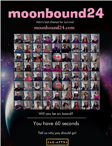 Moonbound24, one of the most "out there" experimental, sci-fi, comedy webseries of it's time, is a futuristic look at the end of the world and mad the rush to become one of  the last 24 people to escape earth and fly to the first inhabitable moon colony, which also happens to be man's last chance for survival. If you were given 60 seconds to explain why you should get one of the last seats on the last rocket to the moon, what would you say? Think fast!  You have 60 seconds...your time starts now!